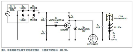 經濟而耐用的簡單混合式電路可用于建筑與室內照明用具。這些電路設計的效率可能低于復雜的開關穩壓器,但它們有低成本和簡單的優勢,因此具有吸引力。這些電路可用于50Hz或60Hz的85V~265V所有交流電壓。