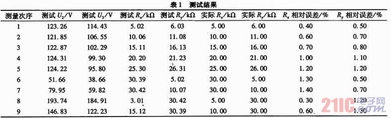 由1~5組可知,當(dāng)絕緣電阻大時,測試相對誤差略有增大,這是因為采樣A/D的輸入阻抗較小,因此當(dāng)測試電阻較大時造成誤差相對大些。另外,當(dāng)負(fù)母線的絕緣電阻<30 kΩ、負(fù)母線絕緣電阻正常時,前者的測量效果差些。因為此時實際測得的電壓U2和U3都較小,A/D采樣的相對誤差大一些,所以電阻的誤差也大一些。不過遠(yuǎn)好于平衡橋法無法發(fā)現(xiàn)兩點接地的情況,可以正卻發(fā)現(xiàn)接地。絕緣檢測的環(huán)境下,只要絕緣電阻>20 kΩ即認(rèn)為絕緣良好,因此對于絕緣檢測的應(yīng)用環(huán)境,本系統(tǒng)能夠比較精確的測試各路的絕緣電阻,完全滿足應(yīng)用環(huán)境的需要。
