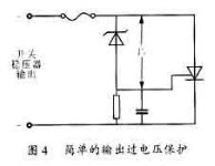 開關(guān)穩(wěn)壓器的過電壓保護(hù)包括輸入過電壓保護(hù)和輸出過電壓保護(hù)。開關(guān)穩(wěn)壓器所使用的未穩(wěn)壓直流電源諸如蓄電池和整流器的電壓如果過高,使開關(guān)穩(wěn)壓器不能正常工作,甚至損壞內(nèi)部器件,因此,有必要使用輸入過電壓保護(hù)電路。用晶體管和繼電器組成的過電壓保護(hù)電路如圖3所示。