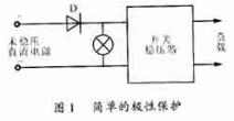 直流開關(guān)穩(wěn)壓器的輸入一般都是未穩(wěn)壓直流電源。由于操作失誤或者意外情況會(huì)將其極性接錯(cuò),將損壞開關(guān)穩(wěn)壓電源。極性保護(hù)的目的,就是使開關(guān)穩(wěn)壓器僅當(dāng)以正確的極性接上未穩(wěn)壓直流電源時(shí)才能工作。利用單向?qū)ǖ钠骷梢詫?shí)現(xiàn)電源的極性保護(hù)。最簡單的極性保護(hù)電路如圖1所示。由于二極管D要流過開關(guān)穩(wěn)壓器的輸入總電流,因此這種電路應(yīng)用在小功率的開關(guān)穩(wěn)壓器上比較合適。在較大功率的場合,則把極性保護(hù)電路作為程序保護(hù)中的一個(gè)環(huán)節(jié),可以省去極性保護(hù)所需的大功率二極管,功耗也將減小。