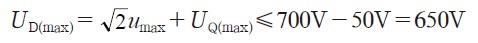 為安全起見,U D ( max)至少應(yīng)比漏-源極擊穿電壓7 00V留出5 0V的余量。這其中還考慮到P6KE200具有0.108%/℃的溫度系數(shù),當環(huán)境溫度T A=25℃時,U B=200V;當T A=100℃時,UB=200V×[(1+0.108)%/℃]×100℃=221.6V,可升高21.6V。
