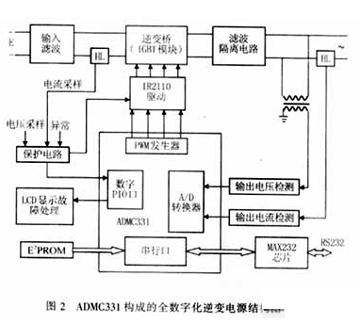 用ADMC331構(gòu)成全數(shù)字化逆變電源的結(jié)構(gòu)圖如圖2所示。