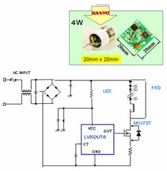 該系列是安森美半導體成員公司三洋半導體的LED控制器--LV5026M、LV5028TT和LV5027T,其中LV5026M具有TRIAC調光、PWM調光、模擬調光和功率因數校正功能;LV5028TT只有TRIAC調光和功率因數校正功能。LV5026/7/8 TRIAC調光電路如圖3所示。