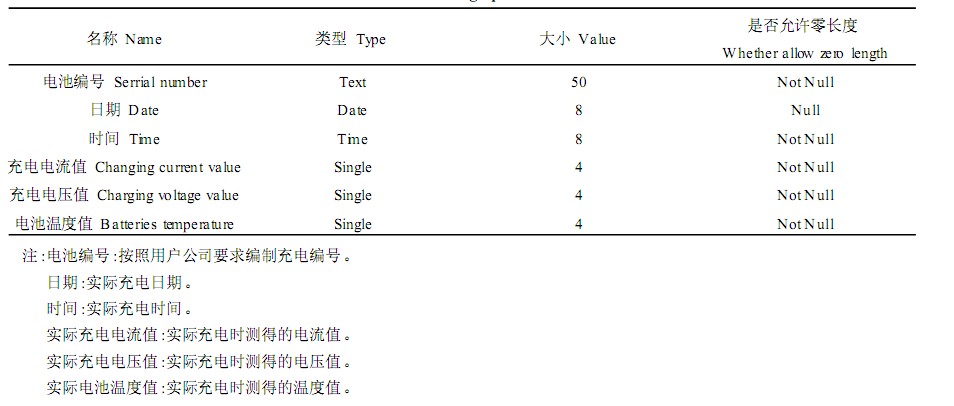 本系統設計了三個數據庫,用于標準充電曲線存儲、實際充電曲線存儲及分析結果存儲。使用VB6. 0提供的數據庫管理工具"可視化數據管理器"建立。其中實際充電曲線數據表如表1所示,數據庫的建立方便了對電池的查詢、分析,同時也方便了管理。