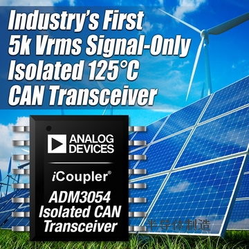 ADI最近推出首款信號隔離CAN(控制器區域網絡)收發器 ADM3054,進一步擴展了其業界領先的隔離接口產品系列,隔離額定值達5 kVrms,工作溫度可達125?C。ADM3054經過全面認證,提供隔離的電源檢測功能,采用高集成度的單個表貼封裝,能夠在惡劣工業環境下工作。與基于光耦合器元件的的傳統分立器件相比,該新款CAN收發器減少了70%的元件數量,極大地簡化了設計,同時縮小高達61%的電路板空間。