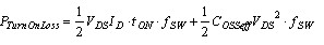 在這一公式中,ID 為剛導通后的漏電流, VDS 為開關上的電壓, COSSeff 為等效輸出電容值(包括雜散電容效應),tON 為導通時間,fSW 為開關頻率。.