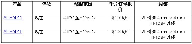 多路輸出調節器ADP5041和ADP5040的主要特性: