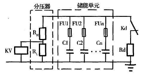 脈沖電容器儲能后,由控制電路發(fā)送命令進行觸發(fā)放電(ETcG發(fā)射)。ETCG發(fā)射精度和一致性與PPS儲能量密切相關(guān),電容器儲能大小與其充電電壓的量值平方成正比,因此控制電路必須能精確控制充電電壓量值,這可以通過與被充電容器組并聯(lián)"分壓器一電壓繼電器組"來實現(xiàn),見圖2。