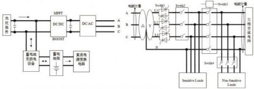 微網逆變器系統將可再生能源(如太陽能,風能,水能,地熱能,生物質能等)轉變為與電網同頻、同相的交流電,優先輸送給當地負荷供電,剩余的電能饋入電網。微網逆變器系統主要包括:光伏組件、蓄電池組、蓄電池充放電設備、DC/DC變換器、微網逆變器、靜態開關等。