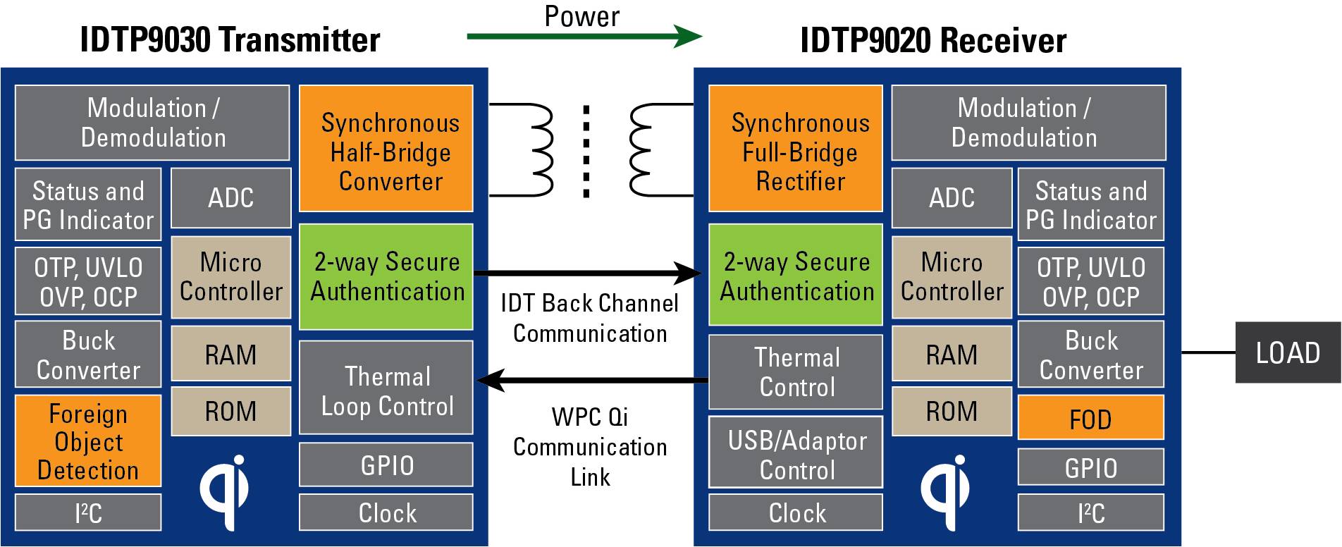 IDTP9030 和 IDTP9020 提供了無線電源發(fā)送器和接收器解決方案,專為滿足無線充電聯(lián)盟(WPC)的 Qi 標準而設計,可保證與其他滿足 WPC Qi 標準器件的互操作性。發(fā)送器和接收器均能夠進行“多模式”操作,可支持 Qi 標準和專用格式以增加功能、改進安全和提高功率輸出能力。內(nèi)置的協(xié)議檢測可實現(xiàn) Qi 與專用模式間的動態(tài)轉(zhuǎn)換,從而實現(xiàn)平穩(wěn)過渡和可靠的用戶體驗。這些器件可用于大量移動應用以進行便利和輕松的電池充電。