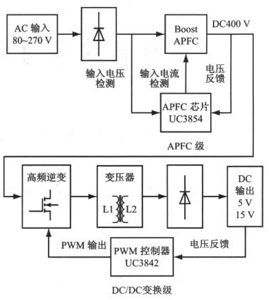 圖2 采用兩級型APFC的高功率因素開關電源結構