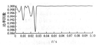PWM 整流器功率因數波形如圖9所示。由圖9可知,電路功率因數始終大于0.985,且工作0.03s后功率因數能達到1.