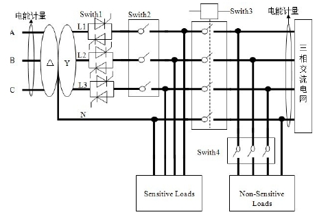 為了實現微網逆變器、負載、電網間的連接,當電路出現故障,需要快速的切換,故電路中使用了靜態開關(晶閘管),交流接觸器,空氣開關。