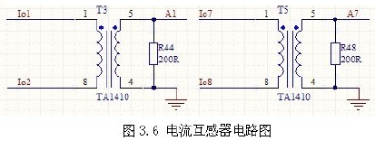 此系統輸出電流小于1A,故選擇最大可以測量1A 的電壓型電流互感器TA1410,負載電阻用是200歐,輸出電壓為-1~1V 的交流電壓。電路如圖3.6 所示。