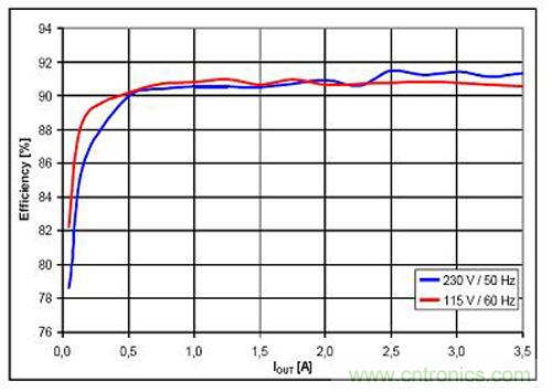 為了幫助客戶盡快實現低待機能耗解決方案,安森美半導體提供了NCP1246 + NCP4354 65W適配器演示板(圖4)。圖5是演示板的電路圖。從圖6可以看出其能效相當高。