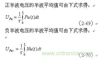 (2-69)、(2-70)式中,Upa和Upa-分別為各種脈沖波形的正、負半波平均值;Pu(t)和Nu(t)分別為各種脈沖波形的正波形函數(正半周)和負波形函數(負半周),τ為正、負脈沖寬度。大部分雙極性交流脈沖,其正、負半波平均值的絕對值都相等,但符號相反。