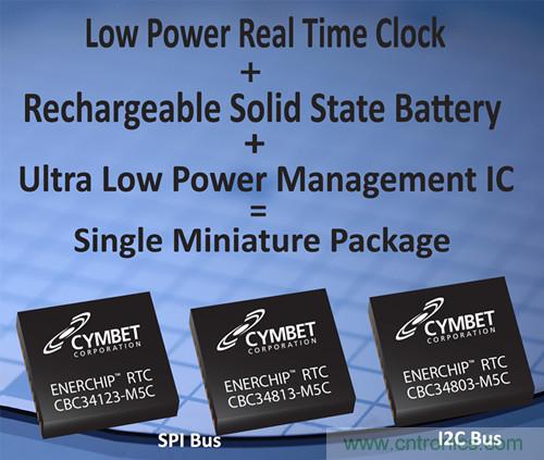 【導讀】Cymbet公司今日宣布:其EnerChip™ RTC系列產品正式發布商用,該產品將一顆超低功耗實時時鐘與可充電固態電池以及電源管理集成電路(PMIC)集成在一個5mm x 5mm的塑料封裝之內,是世界上最小的、帶有內置電源保持的RTC。