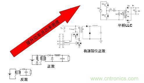 圖2. 隨著功率及功率密度的提升,半橋LLC拓撲成為LED路燈驅動理想選擇