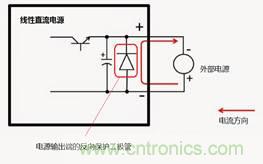 對(duì)于線性電源,必須在電源的輸出端,按照上圖的方式添加反向保護(hù)二極管,即二極管的陰極連接到電源的正極,陽極連接到電源的負(fù)極。