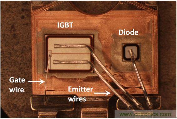 圖1:貼裝在TO-247封裝引線框上的IGBT及二極管