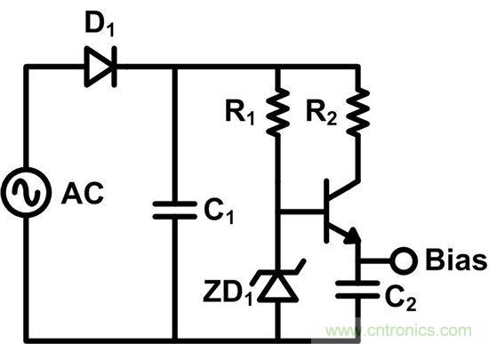 BJT 線性電路可提供一款組件數量最少的簡單偏置電源解決方案。不過,使用該方案的主要缺點是效率低。
