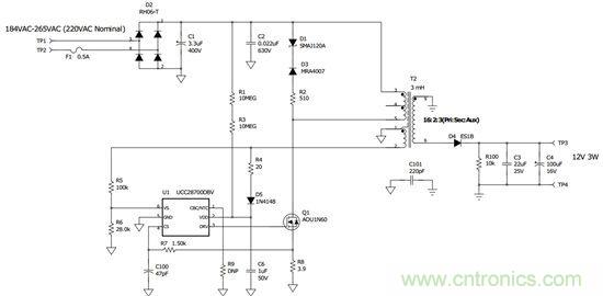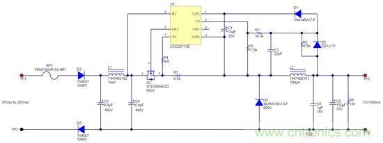 PMP9087 — 85VAC-265VAC 輸入、12V/200mA 無變壓器偏置電源