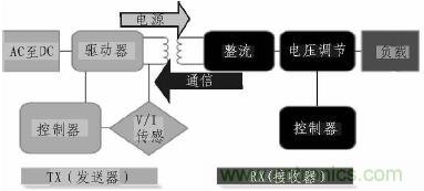 一套完整的無線充電系統包括TX 端和RX 端兩部分,其結構框圖如圖1 所示。 無線充電的結構類似于一個空心變壓器,能量傳輸通過線圈耦合的方式來實現。通常發射線圈及其驅動電路被安裝在一個充電板內,接收線圈及其驅動電路則被嵌入到需充電的設備中,如智能手機等。能量傳輸的效率與線圈之間的距離、線圈對齊的程度、線圈方向、線圈材質、磁場屏蔽、阻抗匹配、發射頻率及占空比等因素有關。其中,線圈之間的距離及對齊程度對傳輸效率有極大的影響。