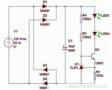 圖2:利用單個TL431恒流的改進型示意圖