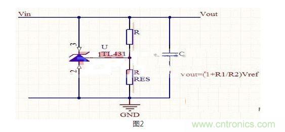 穩壓電路的另一種形式,有些芯片對供電電壓要求比較高,例如AD/DA芯片的基準電壓等,這時常用的一些電壓基準芯片如TL431、MC1403、REF02等。TL431是最常用基準源芯片,有良好的熱穩定性能的三端可調分流基準電壓源。它的輸出電壓用兩個電阻就可以任意地設置到從Vref(2.5V)到36V范圍內的任何值。最常用的電路應用如下圖示,此時Vo=(1+R1/R2)Vref。選擇不同的R1和R2的值可以得到從2.5V到36V范圍內的任意電壓輸出,特別地當R1=R2時,Vo=5V。