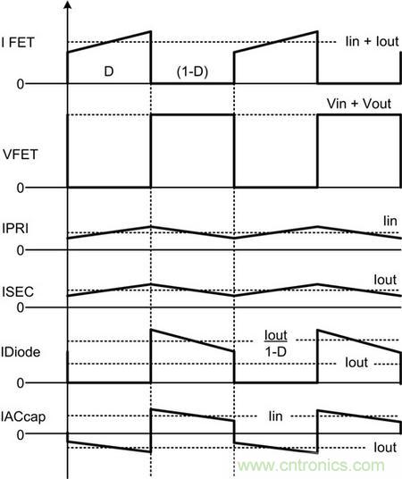 圖2:連續導通模式(CCM)SEPIC的關鍵波形