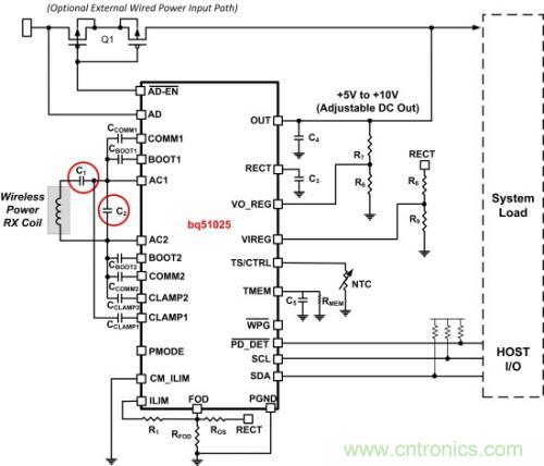 圖4.無線充電接收器和關鍵諧振電容器