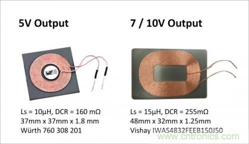 雖然理想狀態是最大限度地減少線圈的直流電阻(DCR),但是在較高的輸出電壓情況下,允許稍微地增加DCR來應對較低的電流。圖7顯示的是兩個典型RX端線圈。所有RX和TX線圈組裝時需要背面屏蔽材料。