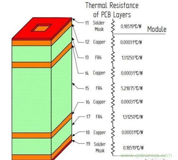 圖4:1平方英寸電路板層的熱阻
