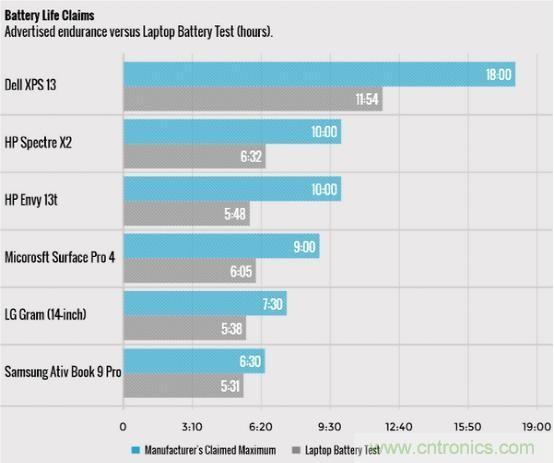 外媒Laptop Mag近日針對(duì)市場中主流筆記本進(jìn)行了一項(xiàng)電池壽命比對(duì)測試,通過筆記本電池測試得出接近于現(xiàn)實(shí)使用環(huán)境下的電池壽命,再與官方宣稱的電池壽命相比對(duì)。