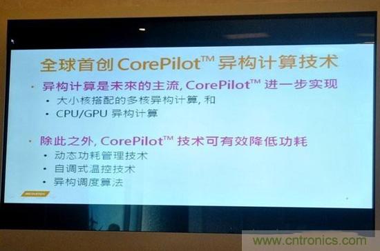 聯發科CTO周漁君曾表示:“現在影響手機的體驗并非手機處理器的性能,而是電池的使用時間,我們的CorePilot技術可以分配不同任務讓不同的核心處理,這就讓功耗與性能得到了完美的統一”