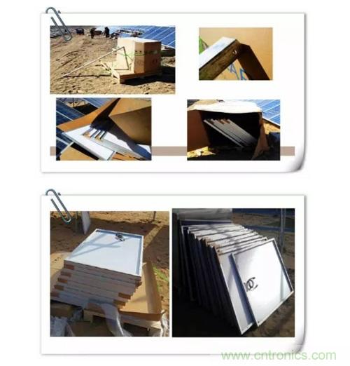 2、組件安裝過程中,應盡量避免安裝工人在組件上直接落腳進行操作,若必須上人,工人落腳點及手扶著力點只能是組件邊框上。