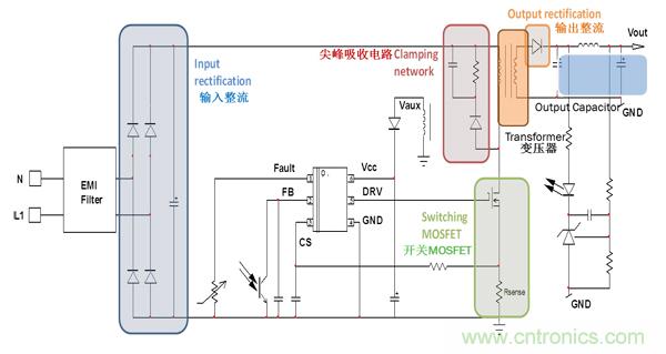 分析準諧振反激損耗旨在提高工作頻率后再減少功率損耗。準諧振反激電源的損耗主要分布在初級MOSFET、尖峰吸收電路、變壓器和輸出整流。