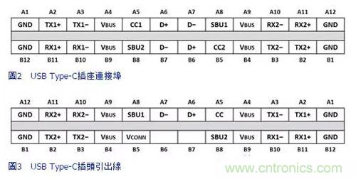 連接埠與連接線的配置如圖2、圖3所示。由于插座連接埠中的訊號採用對稱設(shè)計,因此翻轉(zhuǎn)插頭并不會造成任何問題。USB 3.1 SuperSpeed TX/RX、VBUS、GND以及所有其他引腳會正確連接,不必考慮方向性。從使用者角度來看,因為Type-C連接線可以任一方向插入,因此是Type-A連接埠的升級版。