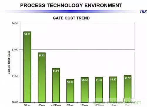 IBS 首席執行官Handel Jones則比較了16/14納米FinFET與14納米FD SOI的晶圓成本與單位晶體管成本,根據他的計算,14納米FD-SOI工藝單位晶體管成本比相應的FinFET工藝低了近17%。