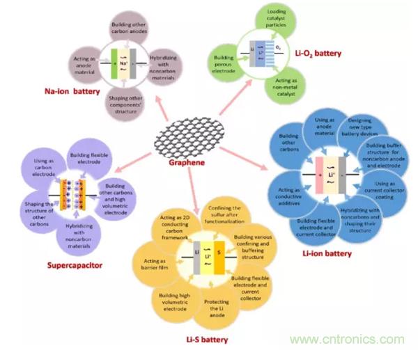除了以上幾點,石墨烯相較于傳統碳材料還具有多種優越性能,可能有助于促進各種新型電池系統的實際應用。新近研究報告指出,高能室溫鈉硫電池通過碳/硫復合材料作為電極。我們可以預料,石墨烯可以進一步幫助提升這類電池的性能。還有研究發現,石墨烯基復合材料可作為鋅空氣電池的高效電催化劑。在種種結果之上,我們不難看出,石墨烯在未來能源儲存裝置應用中的巨大潛力。