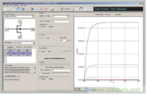 對(duì)這類應(yīng)用,非常重要的一點(diǎn)是要有一整套測(cè)試功能,包括脈沖、DC和C-V。采用器件專用詞匯的軟件(而不是儀器專用詞匯)可以幫助簡化測(cè)量。這些軟件還可以簡化多臺(tái)源測(cè)量單元(SMU)儀器之間的交互,用戶可以把重點(diǎn)放在被測(cè)器件上,而不是測(cè)量儀器上。