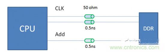 我們來回顧一下,DDR布線,線長匹配的基本原則是:地址,控制/命令信號與時鐘做等長。數據信號與DQS做等長。為啥要做等長?大家會說是要讓同組信號同時到達接收端,好讓接收芯片能夠同時處理這些信號。那么,時鐘信號和地址同時到達接收端,波形的對應關系是什么樣的呢?我們通過仿真來看一下具體波形。