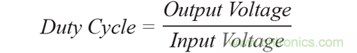 開關(guān)導(dǎo)通時(shí))和斷開時(shí)間(當(dāng)主開關(guān)斷開時(shí))之間的關(guān)系。降壓轉(zhuǎn)換器的占空比由以下公式定義: