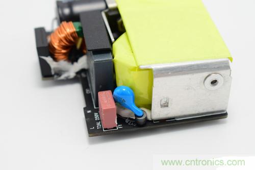 AC輸入端保護及EMI電路包括保險、X電容、共模電感。