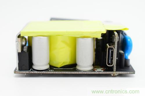 二次側低壓輸出濾波為兩枚固態電容,Type-C輸出母座安裝在一塊獨立PCB小板上。