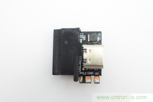 Type-C輸出為獨立的一塊PCB小板,小板尾部有塑膠封套,用于絕緣和定位。