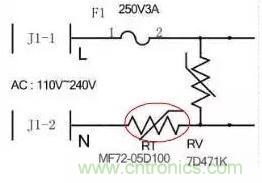 NTC是以氧化錳等為主要原料制造的精細半導體電子陶瓷元件。電阻值隨溫度的變化呈現非線性變化,電阻值隨溫度升高而降低。利用這一特性,在電路的輸入端串聯一個負溫度系數熱敏電阻增加線路的阻抗,這樣就可以有效的抑制開機時產生的浪涌電壓形成的浪涌電流。當電路進入穩態工作時,由于線路中持續工作電流引起的NTC發熱,使得電阻器的電阻值變得很小,對線路造成的影響可以完全忽略。