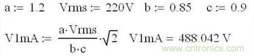6、V1mA 為壓敏電阻電壓實際取值近似值