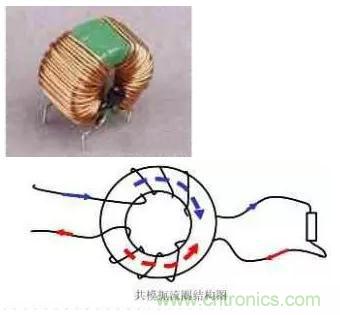 共模電感上,A和B就是共模電感線圈。這兩個線圈繞在同一鐵芯上,匝數和相位都相同(繞制方向向反)。這樣,當電路中的正常電流流經共模電感時,電流在同相位繞制的電感線圈中產生反向的磁場而相互抵消,此時正常信號電流主要受線圈電阻的影響(和少量因漏感造成的阻尼);當有共模電流流經線圈時,由于共模電流的同向性,會在線圈內產生同向的磁場而增大線圈的感抗,使線圈表現為高阻抗,產生較強的阻尼效果,以此衰減共模電流,抑制高速信號線產生的電磁波向外輻射發射,達到濾波的目的。