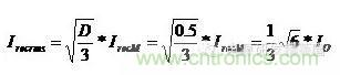 (3)流過整流器的有效值電流與平均值電流的關系: